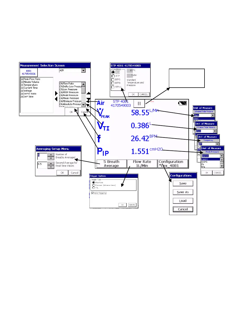 measure, gas calibration, gas conditions, averaging, and triggering. You can also