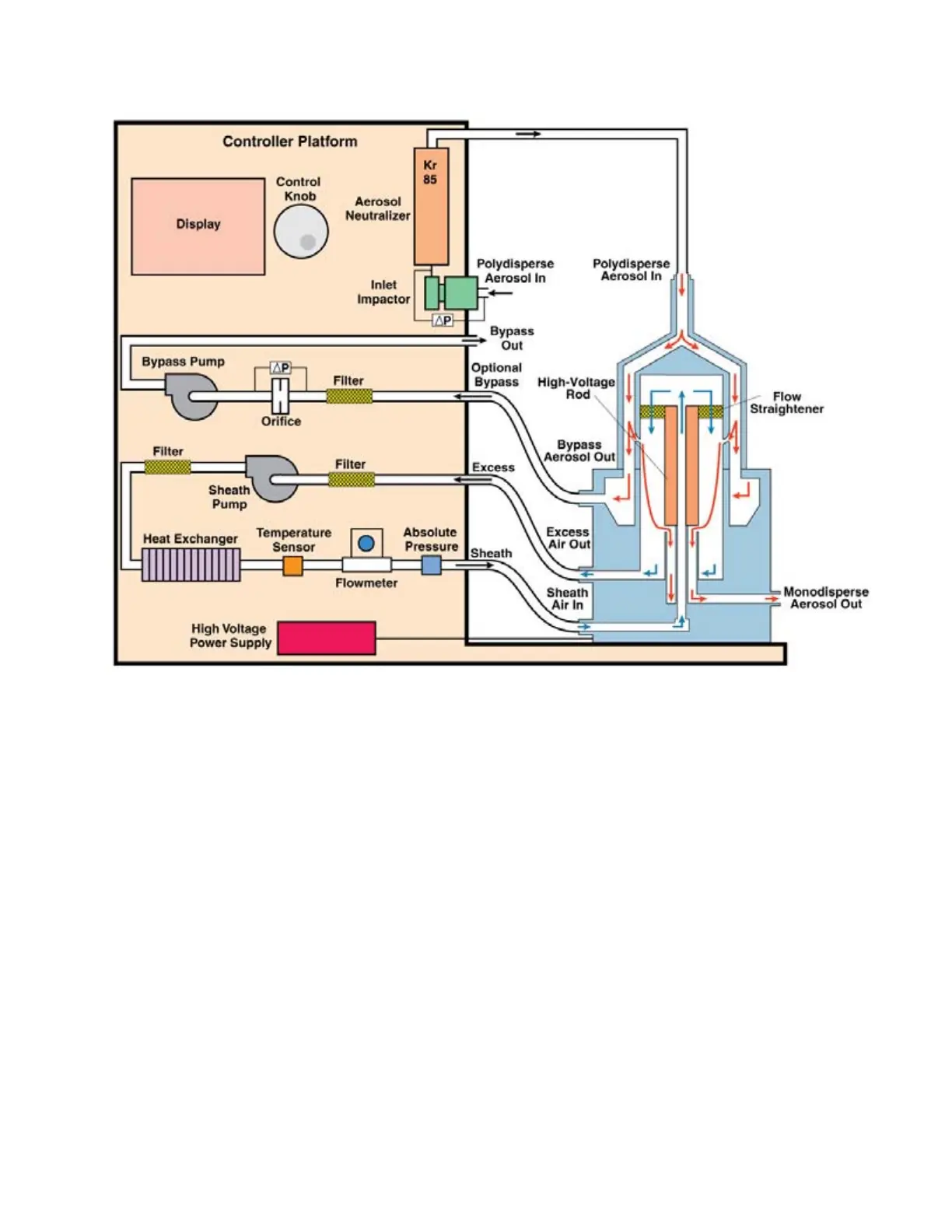 TSI Instruments 3080L - Flow Schematic for the Electrostatic Classifier with Nano DMA in Single Blower Mode