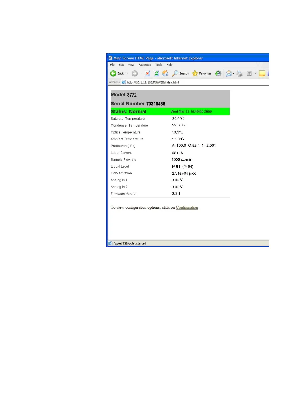 TSI Instruments 3772 - Main Screen HTML Page