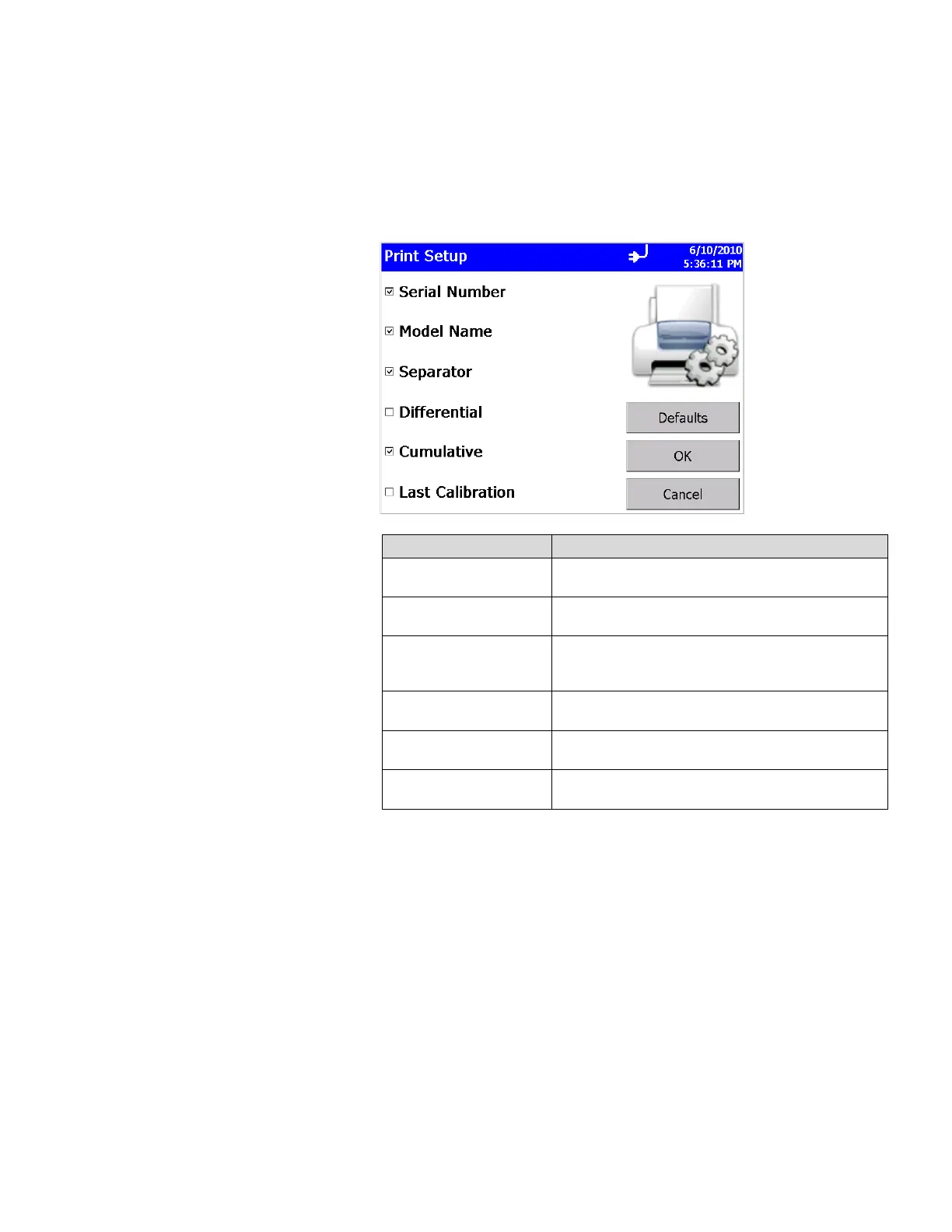 Print Setup Screen