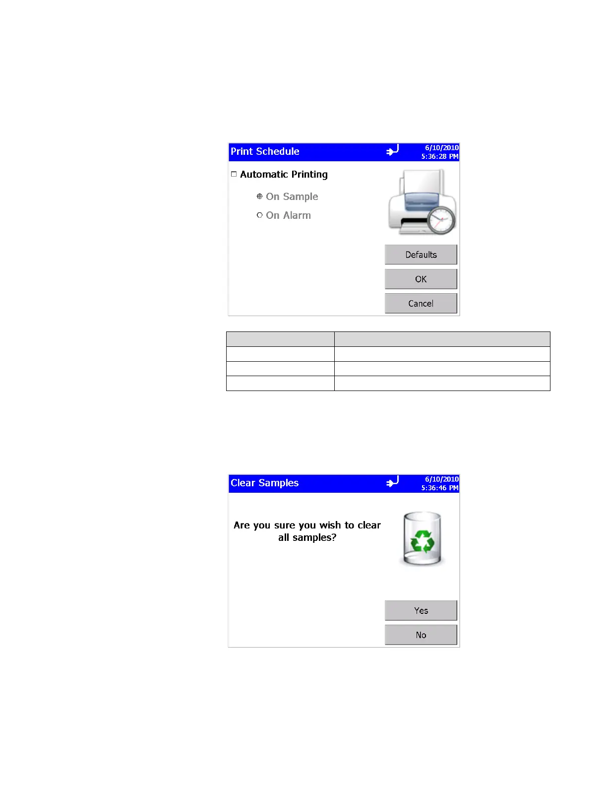 The Clear Samples screen lets you clear all samples from the