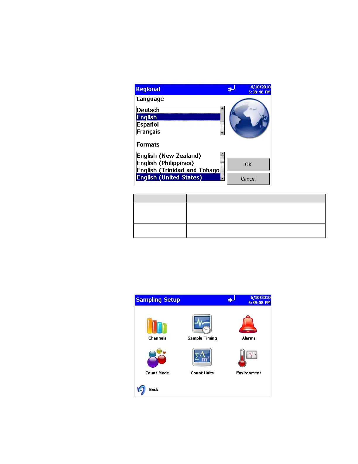 This screen lets you set the language in which the on-screen