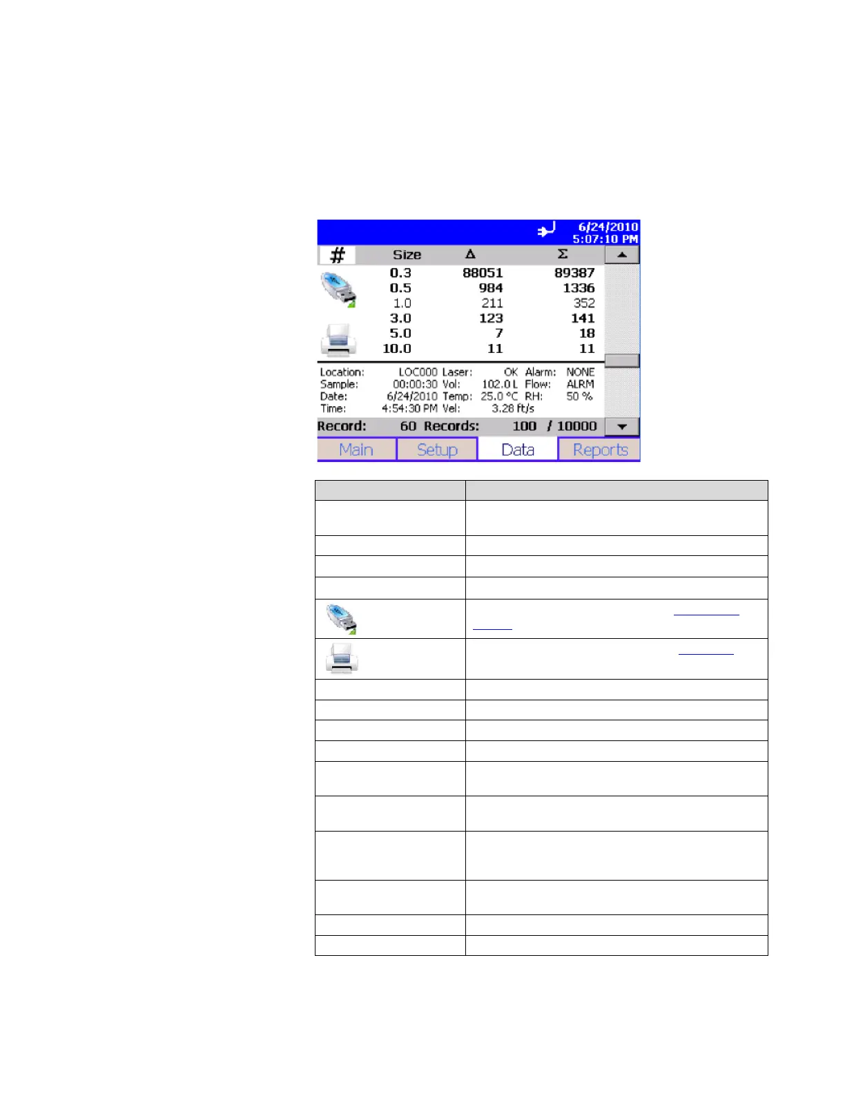 Print data to the optional printer. See Print Data