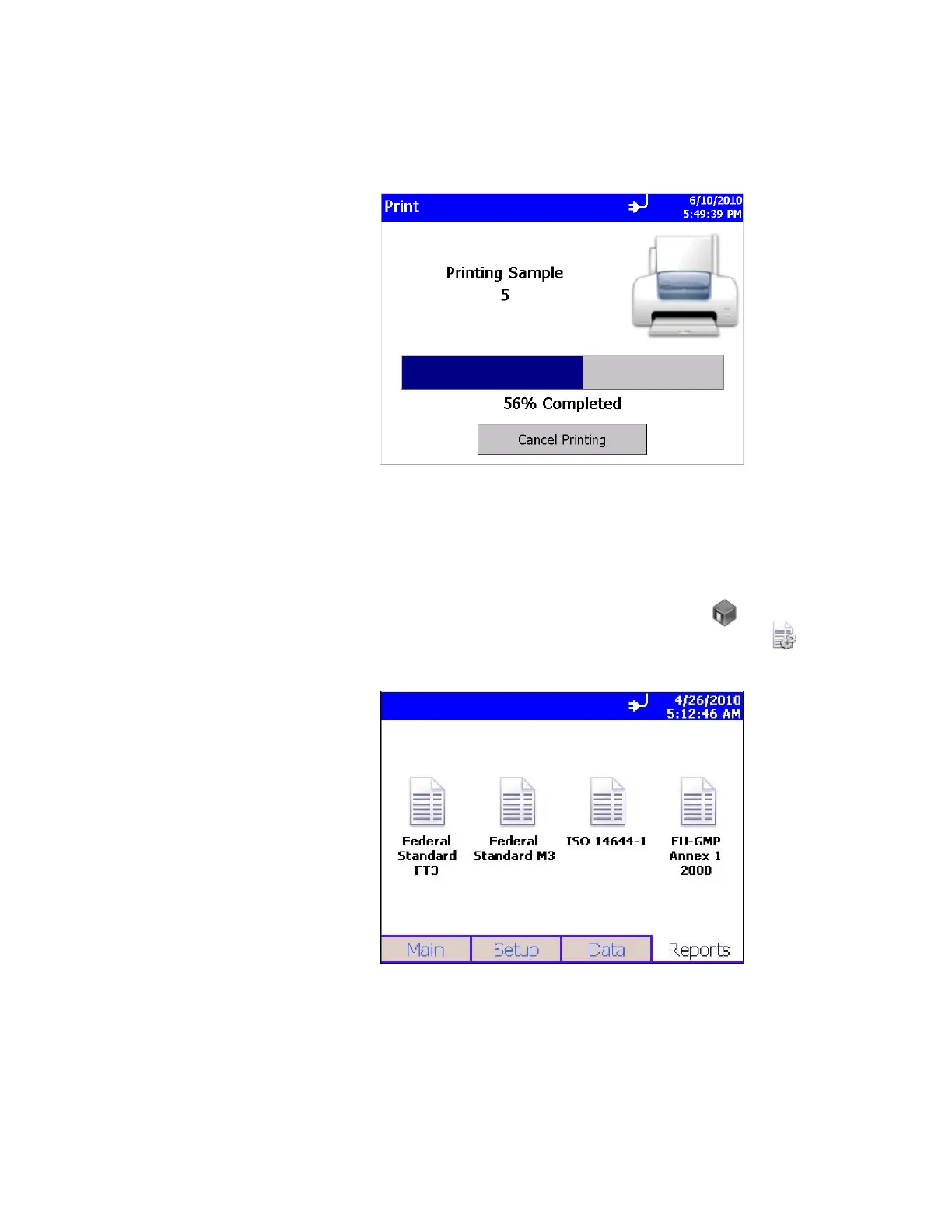 range of sample data to be printed. Press the Cancel Printing