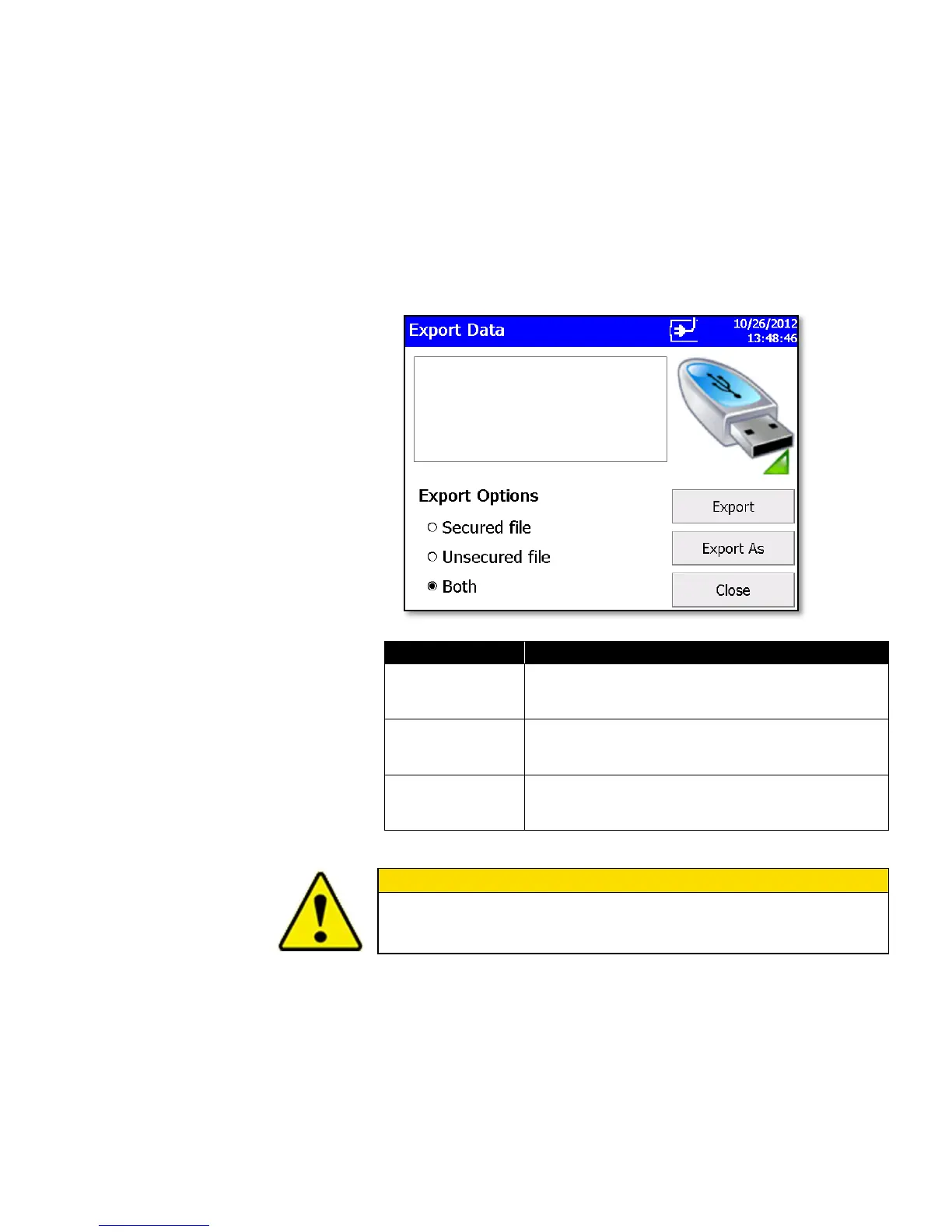 1. Click the USB drive icon on the Data tab. The Export Data screen