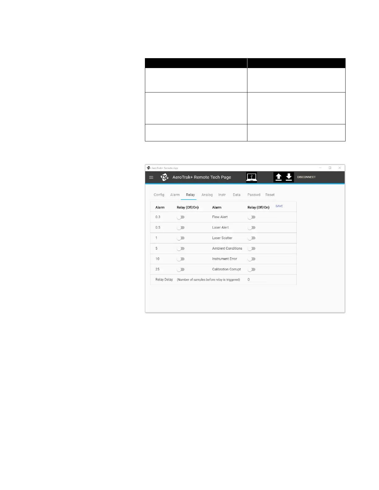status alarms will activate the relay if