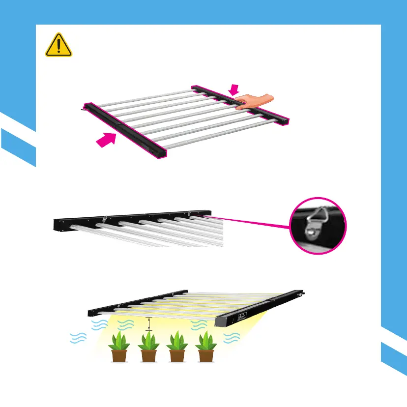 • Mount the light bars at least 8'' from the top of your canopy for optimal light
