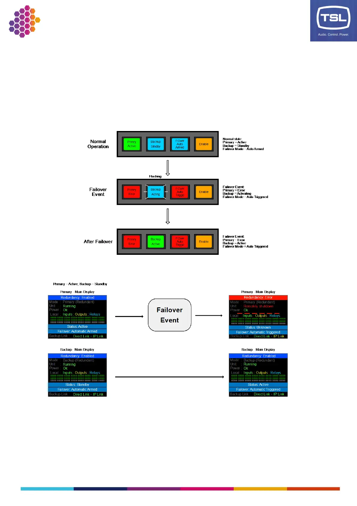 The auto mode has a few different states related to the current failover status. The redundancy system is