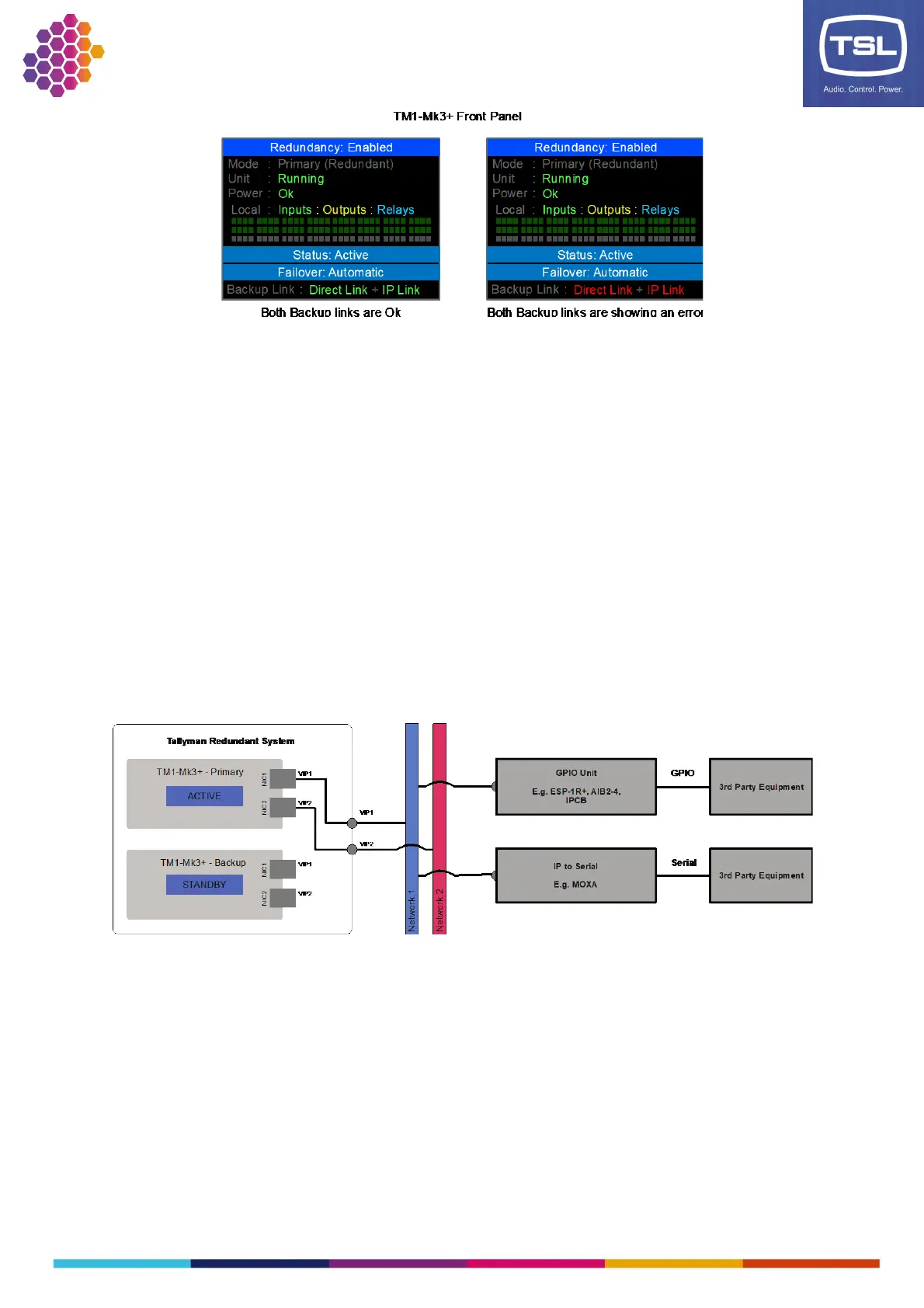 communicate to the TallyMan system using a VIP address and continue to operate after a Failover event