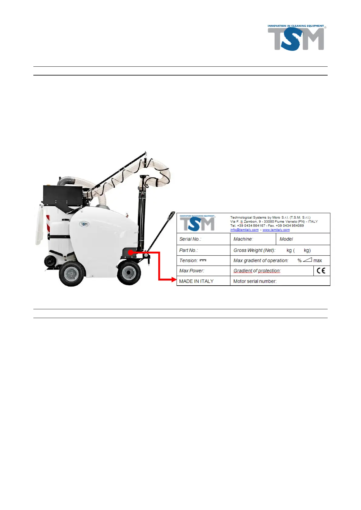La machine est identifiée par l'étiquette avec les données du fabricant, où il est également signalé: