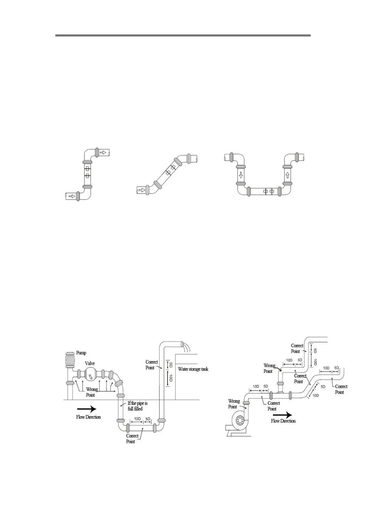 10D to upstream and 5D to downstream. (D means outer diameter)