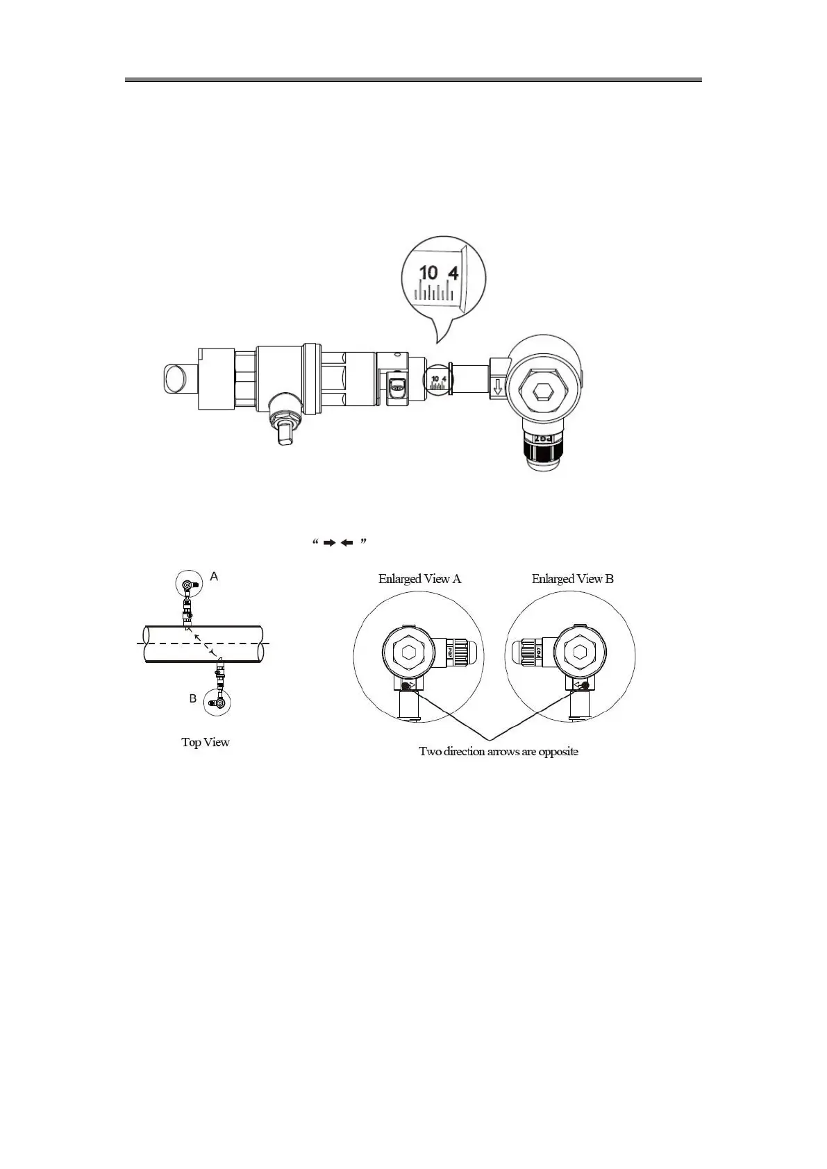 Open ball valve, completely push in the upstream transducer rod. Adjust the transmit