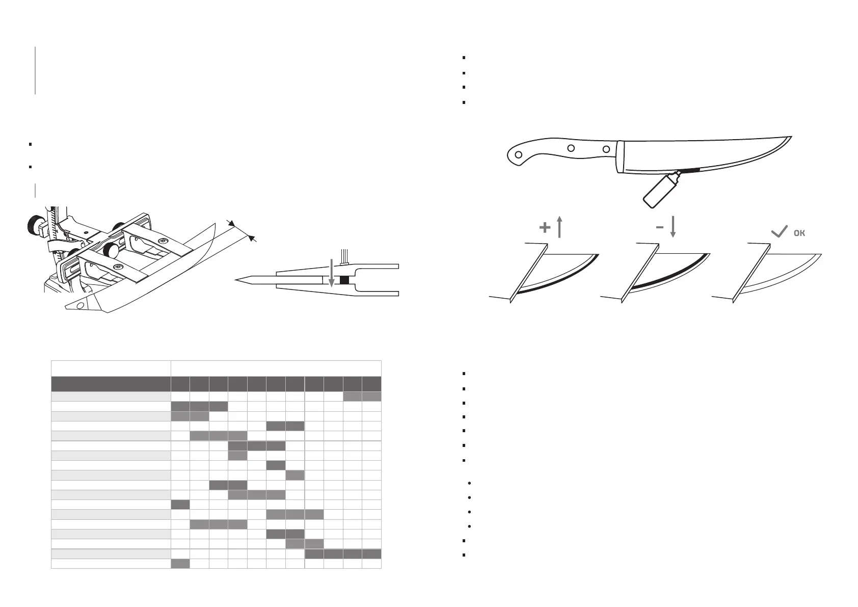 В зависимости от сферы применения ножа выберите необходимый угол заточки. 7.1.