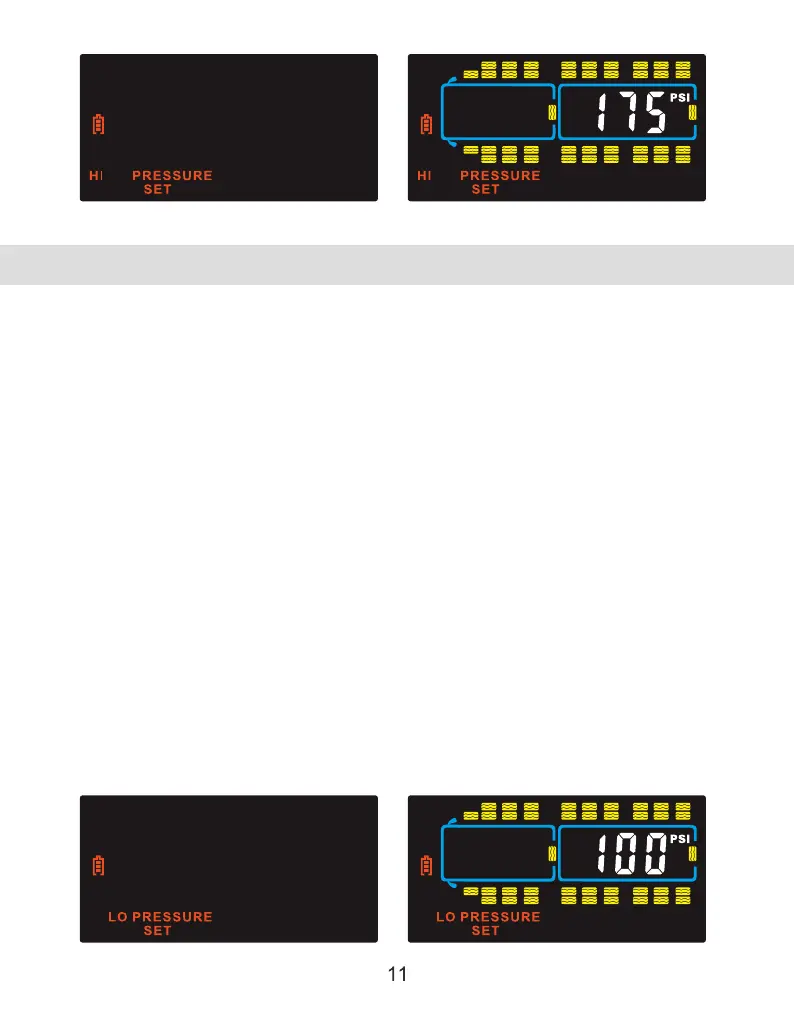Press the (+) button once and "LOW PRESSURE SET" will appear. Press the "SET"