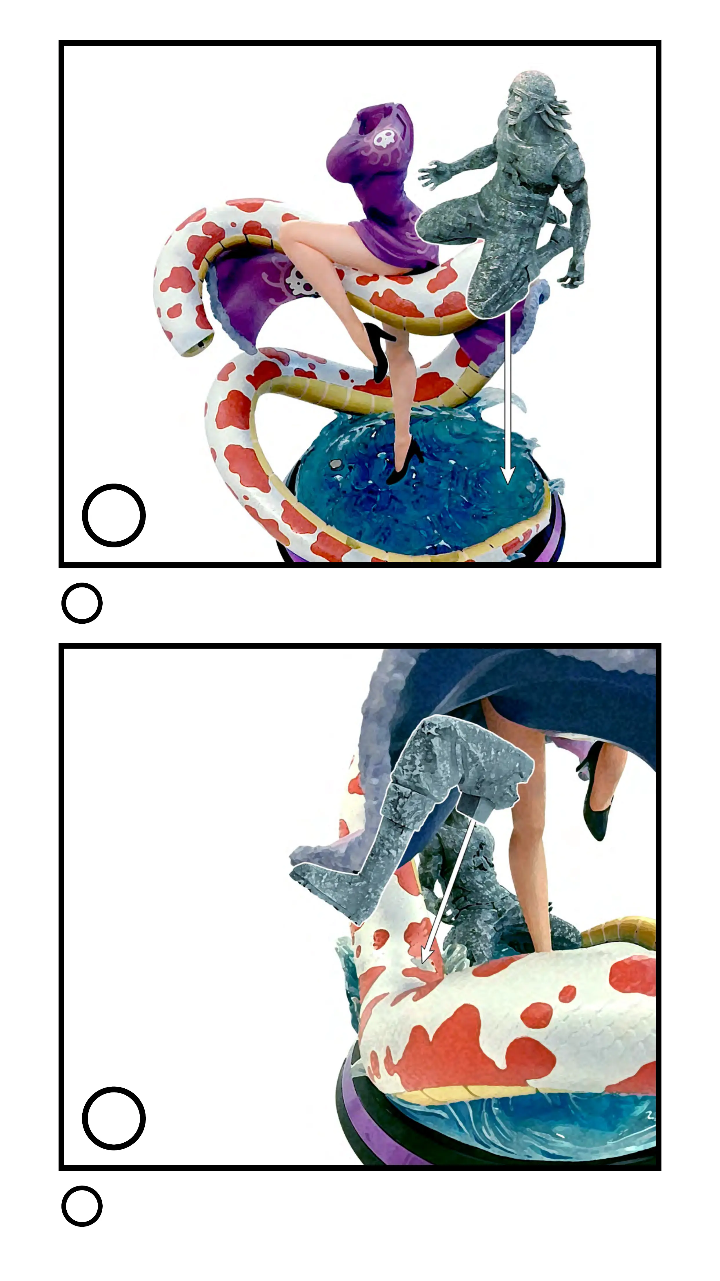 Placez le personnage pétrifié à genou sur le socle.