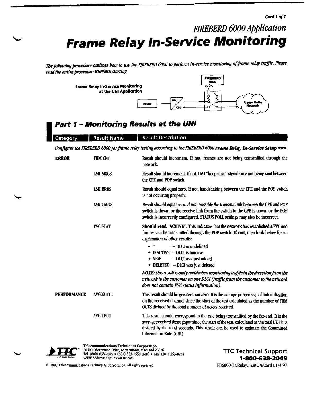Frame Relay In-Service Monitoring