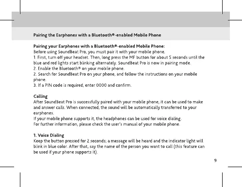ttec SoundBeat Pro - Pairing the Earphones with a Bluetooth-enabled Mobile Phone; Voice Dialing Functionality