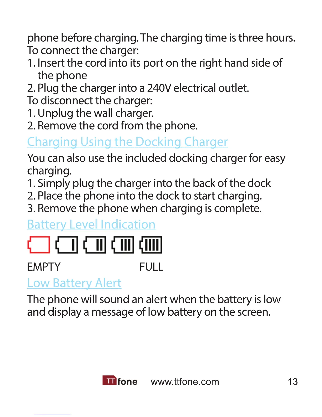 ttfone TT100 Comet - Charging Methods and Alerts