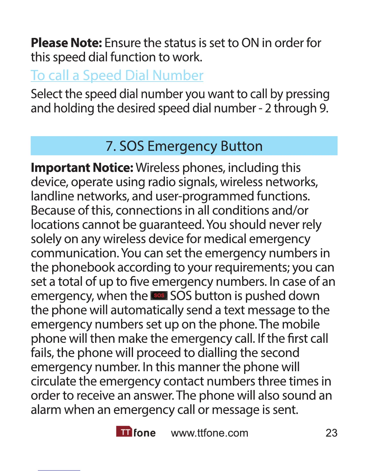 ttfone TT100 Comet - Speed Dial Call Functionality