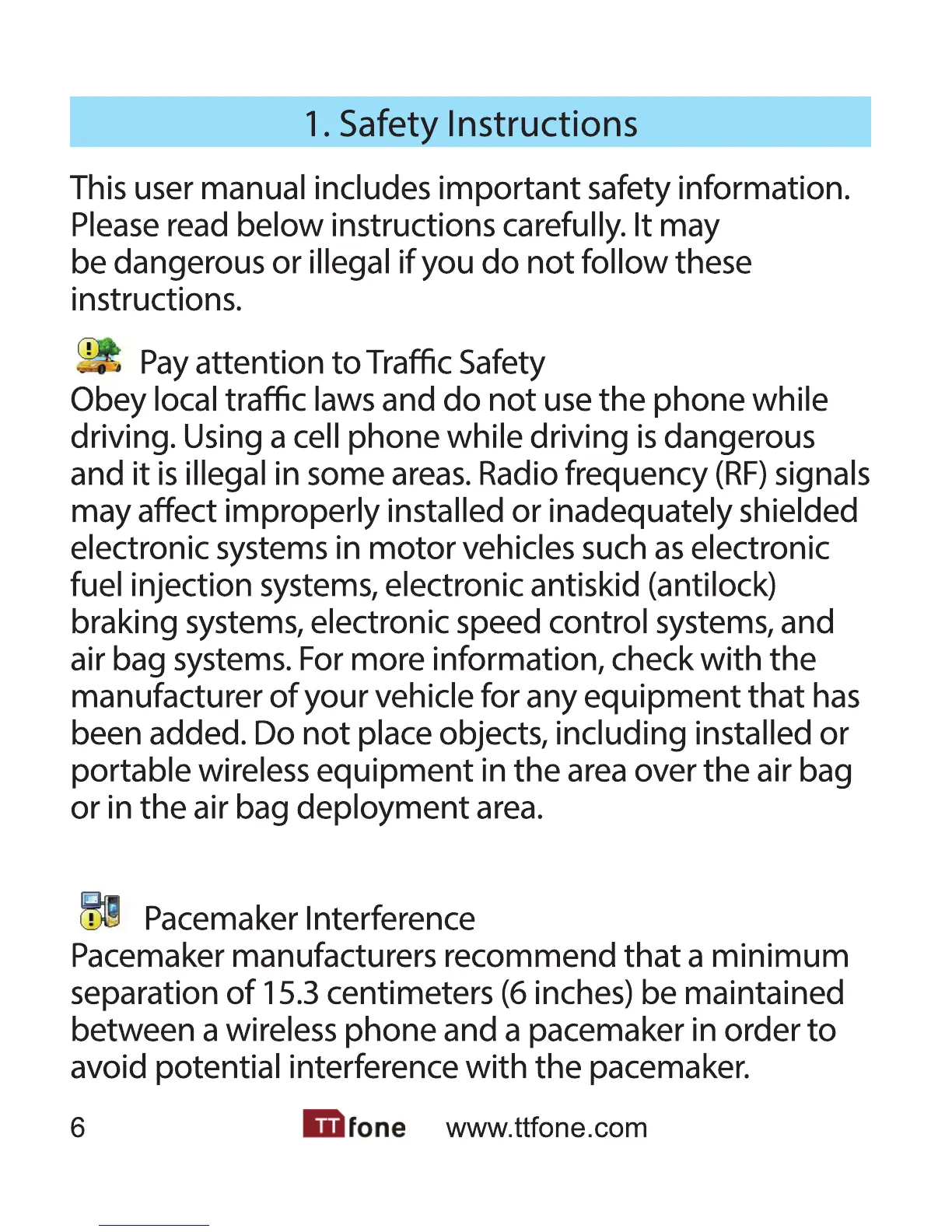 ttfone TT100 Comet - Safety Precautions Overview