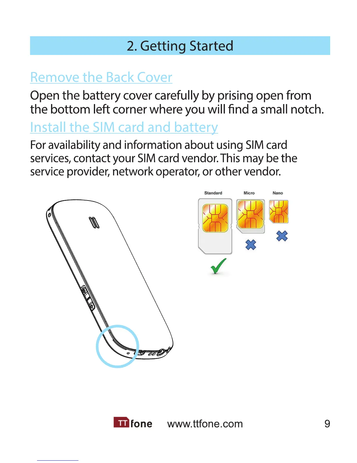 ttfone TT100 Comet - SIM and MicroSD Card Installation