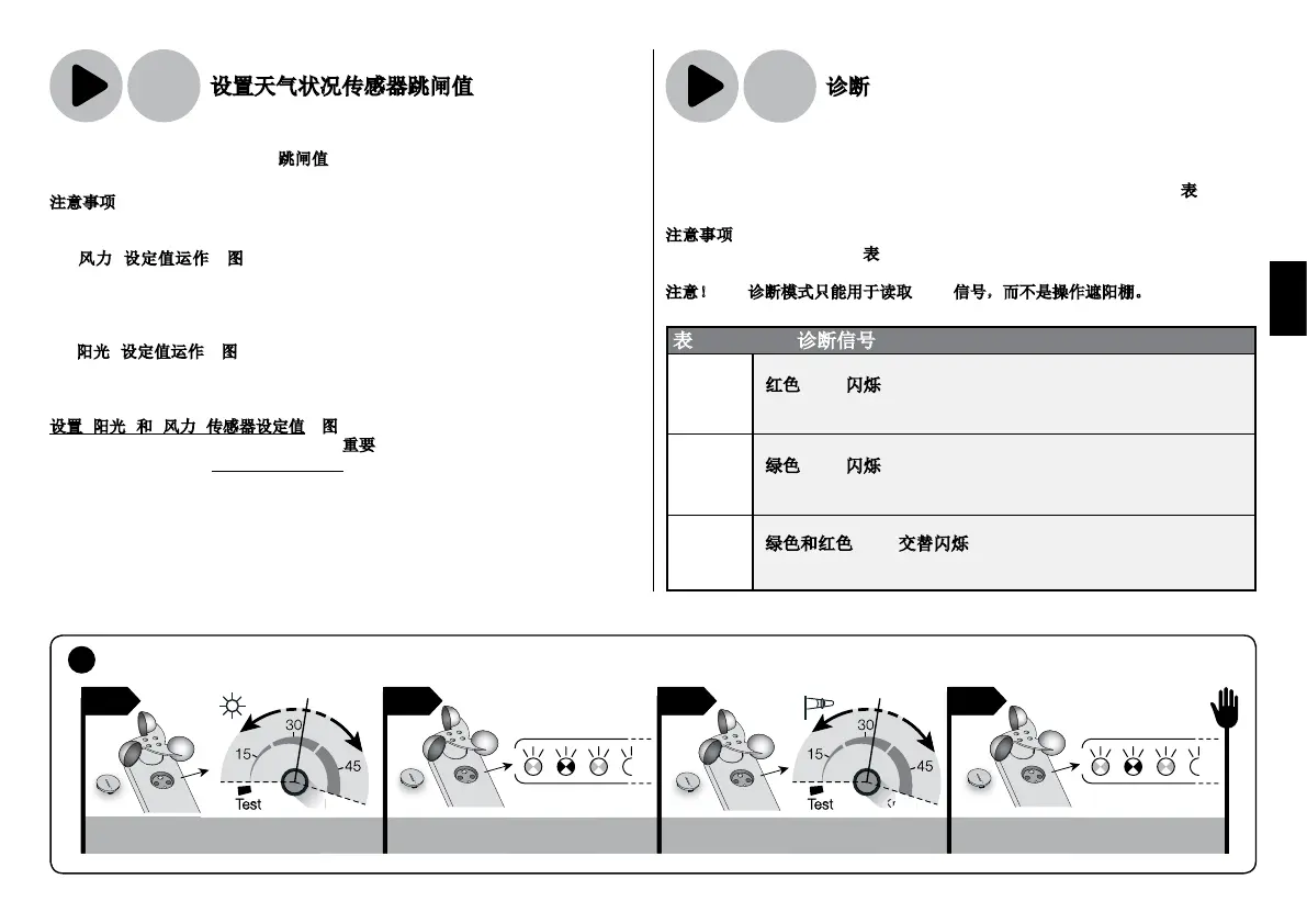 注意!——诊断模式只能用于读取 LED 信号,而不是操作遮阳棚。