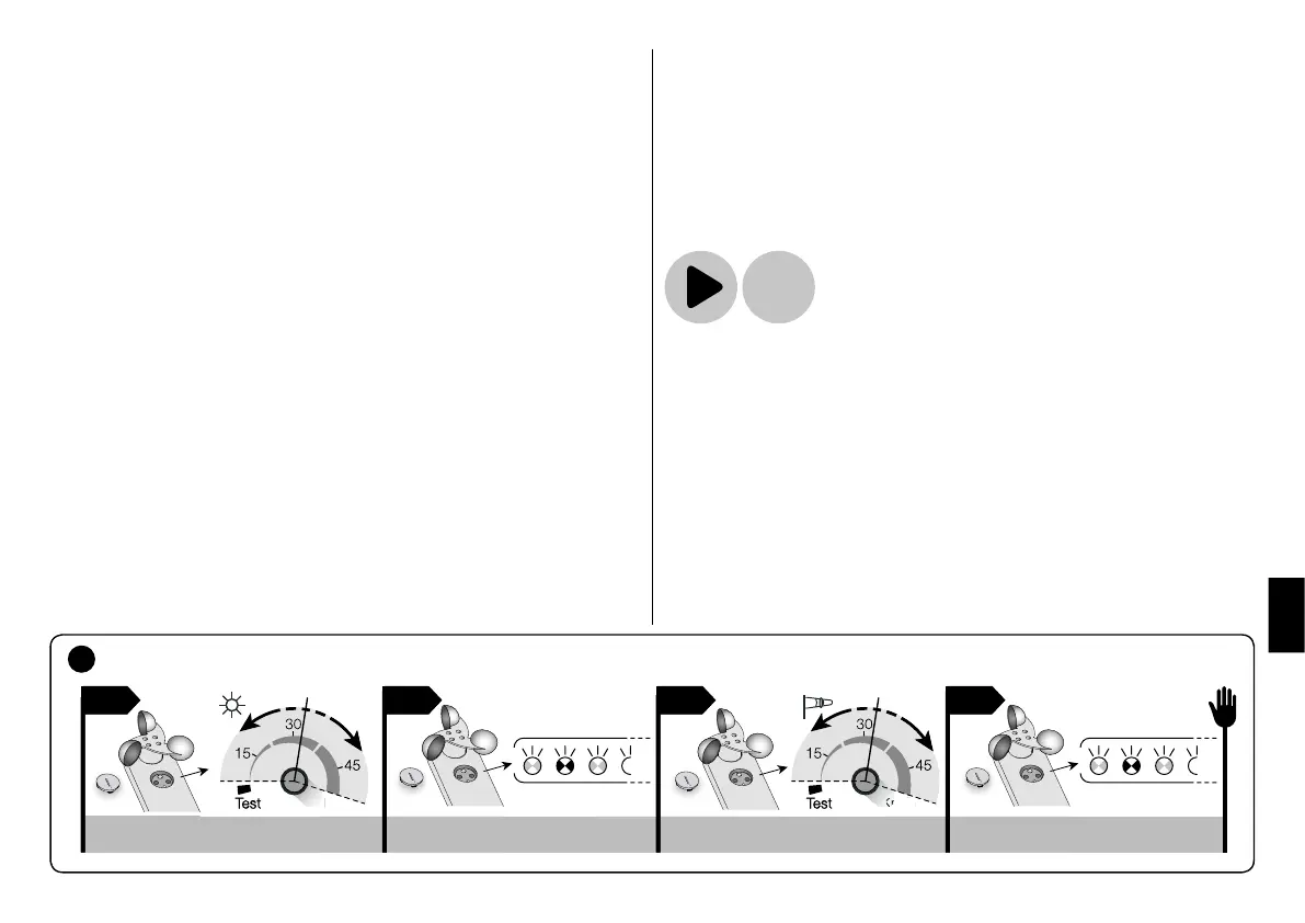 02. Den Trimmer „Sonne“ gegen den Uhrzeigersinn drehen, bis er die Position „Test“