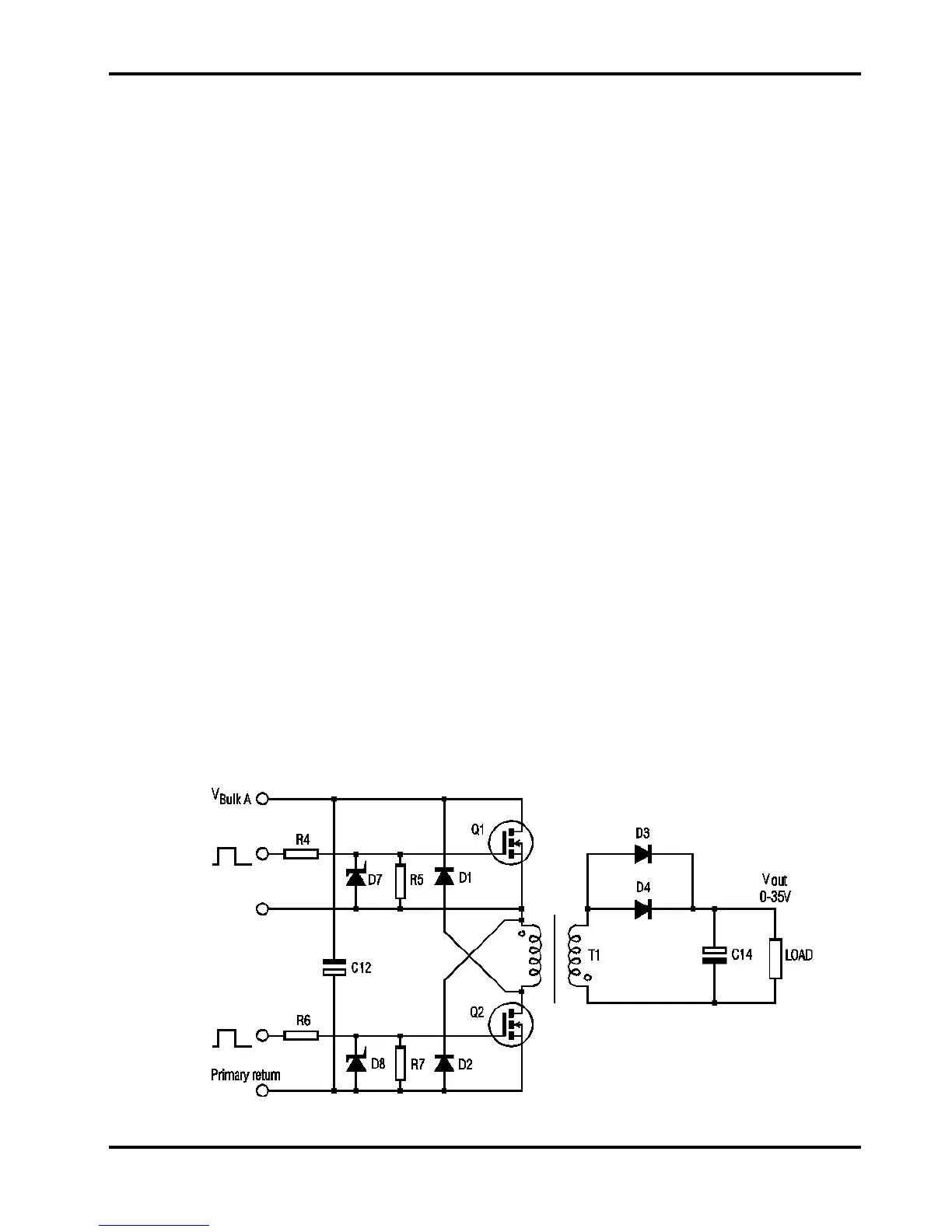When FETs Q1 and Q2 are turned on, current flows in the primary winding of power transformer
