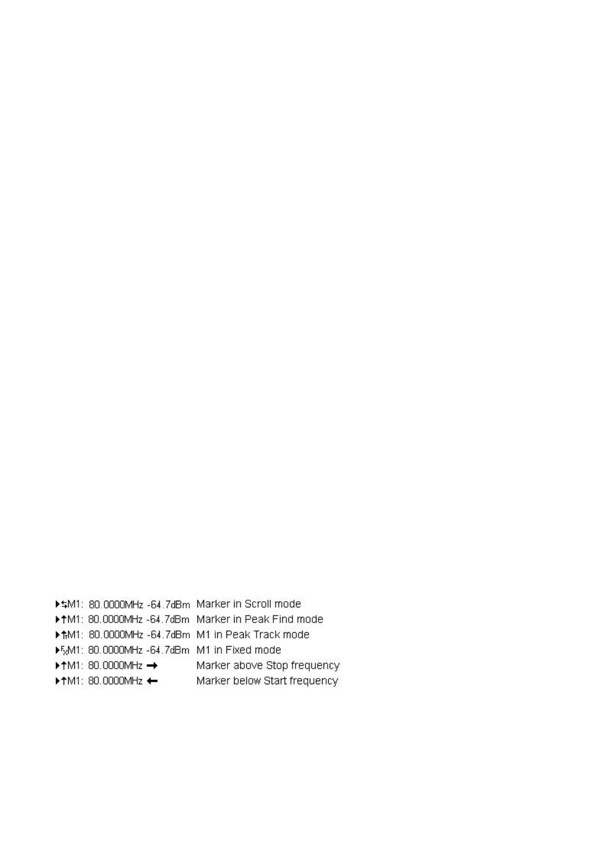 is indicated by two horizontal arrows on the left hand side of the marker readout. The mode is