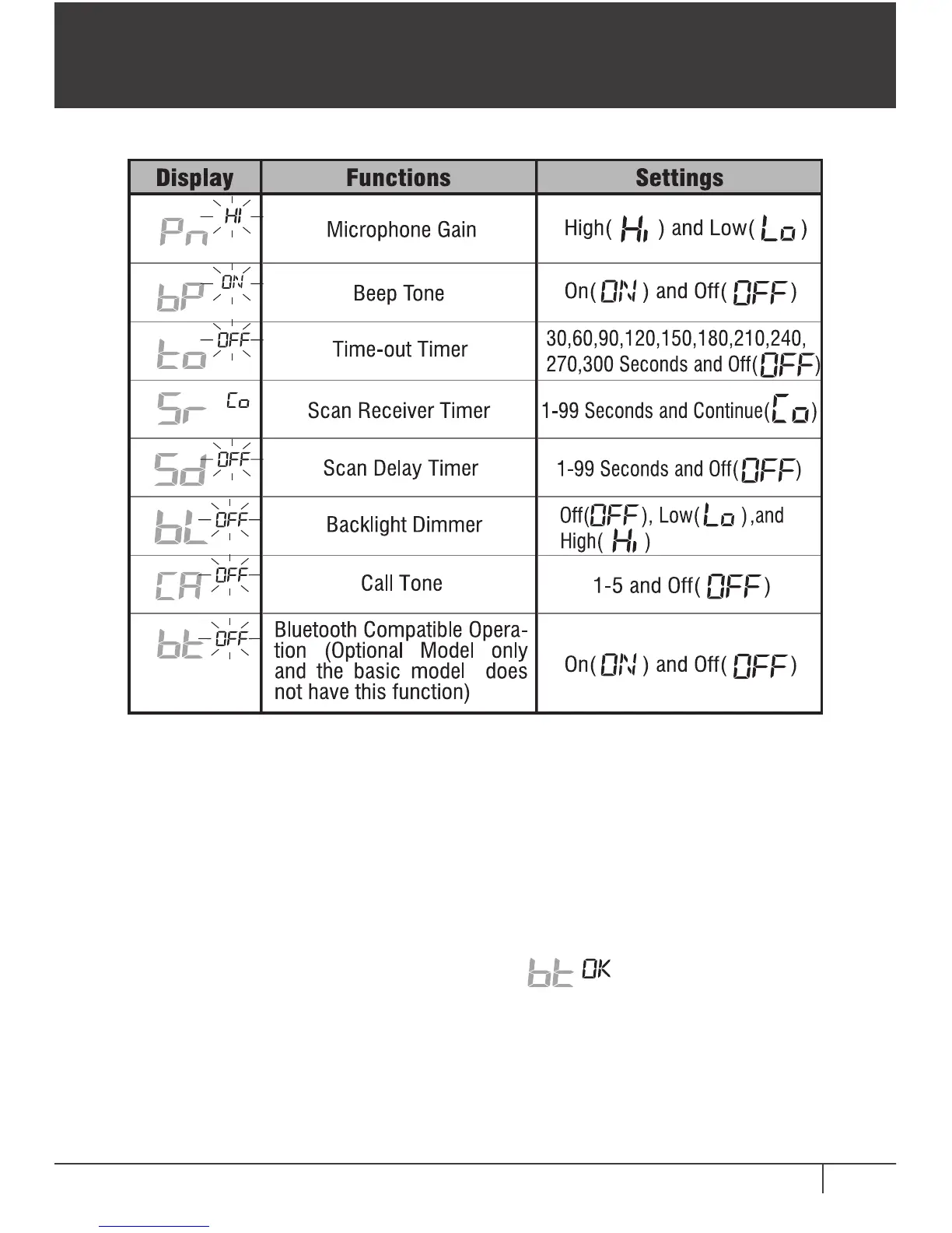 5. The transceiver automatically returns to the stand-by mode and the Bluetooth