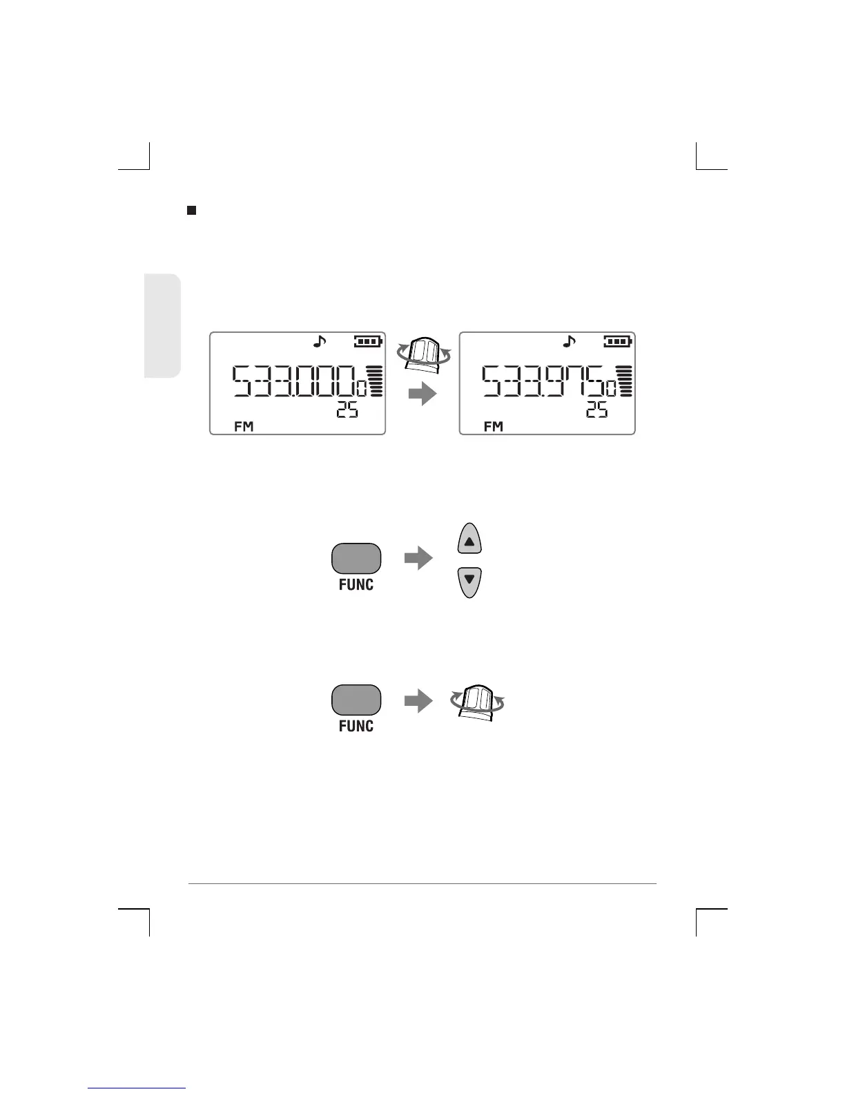 • To change frequency in 1 MHz steps, press the Func key,