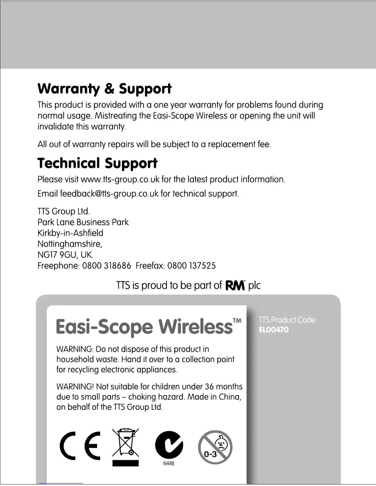 TTS Easi-Scope Wireless - WARRANTY AND SUPPORT; Technical Support Information