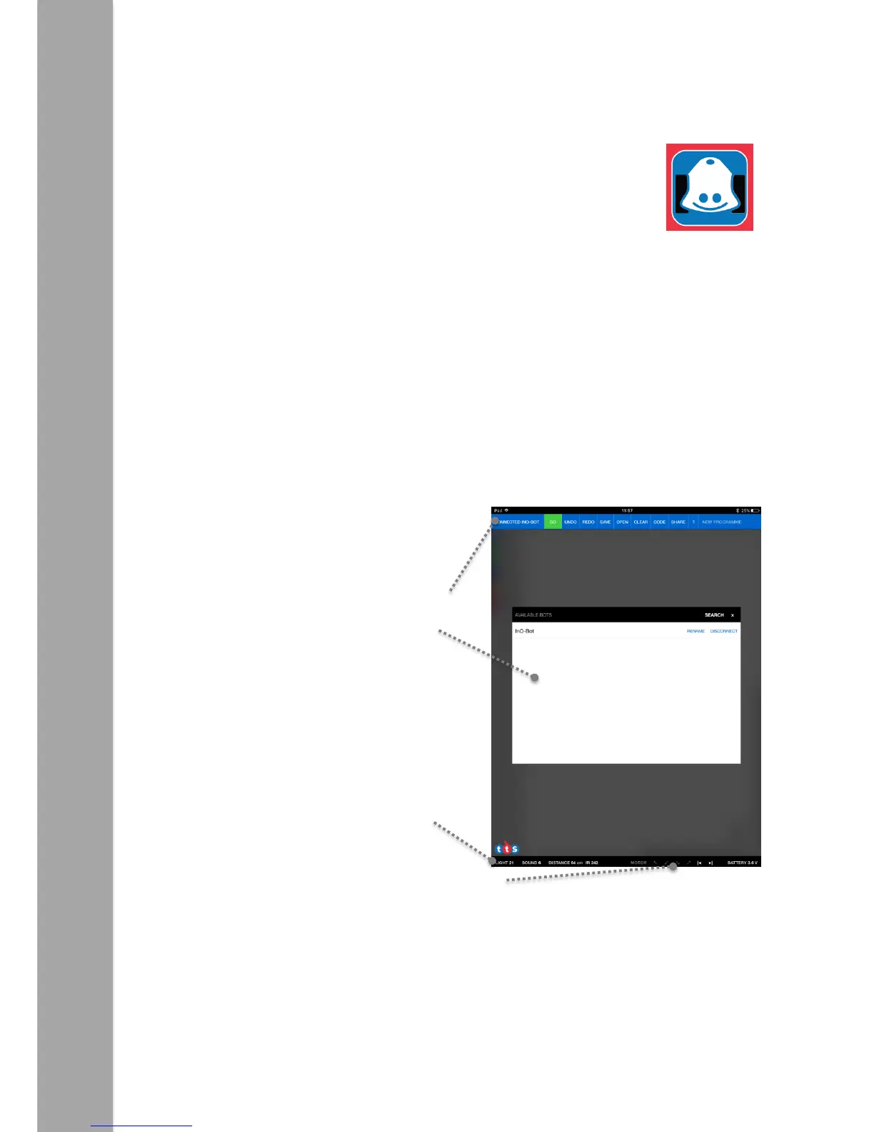 3) The app should find and automatically connect to an available InO-Bot. Whilst it