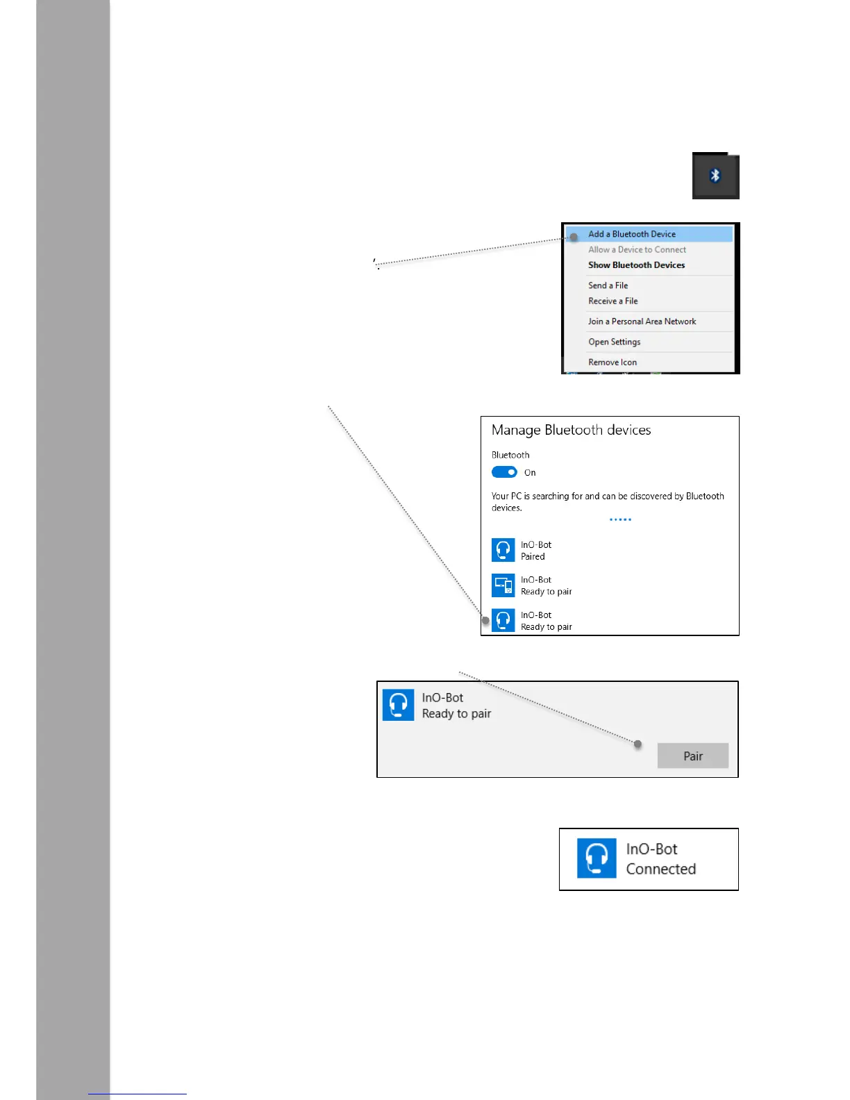 Note: Steps 2 to 6 above only need to be completed once for an InO-Bot to be used. Once complete the computer