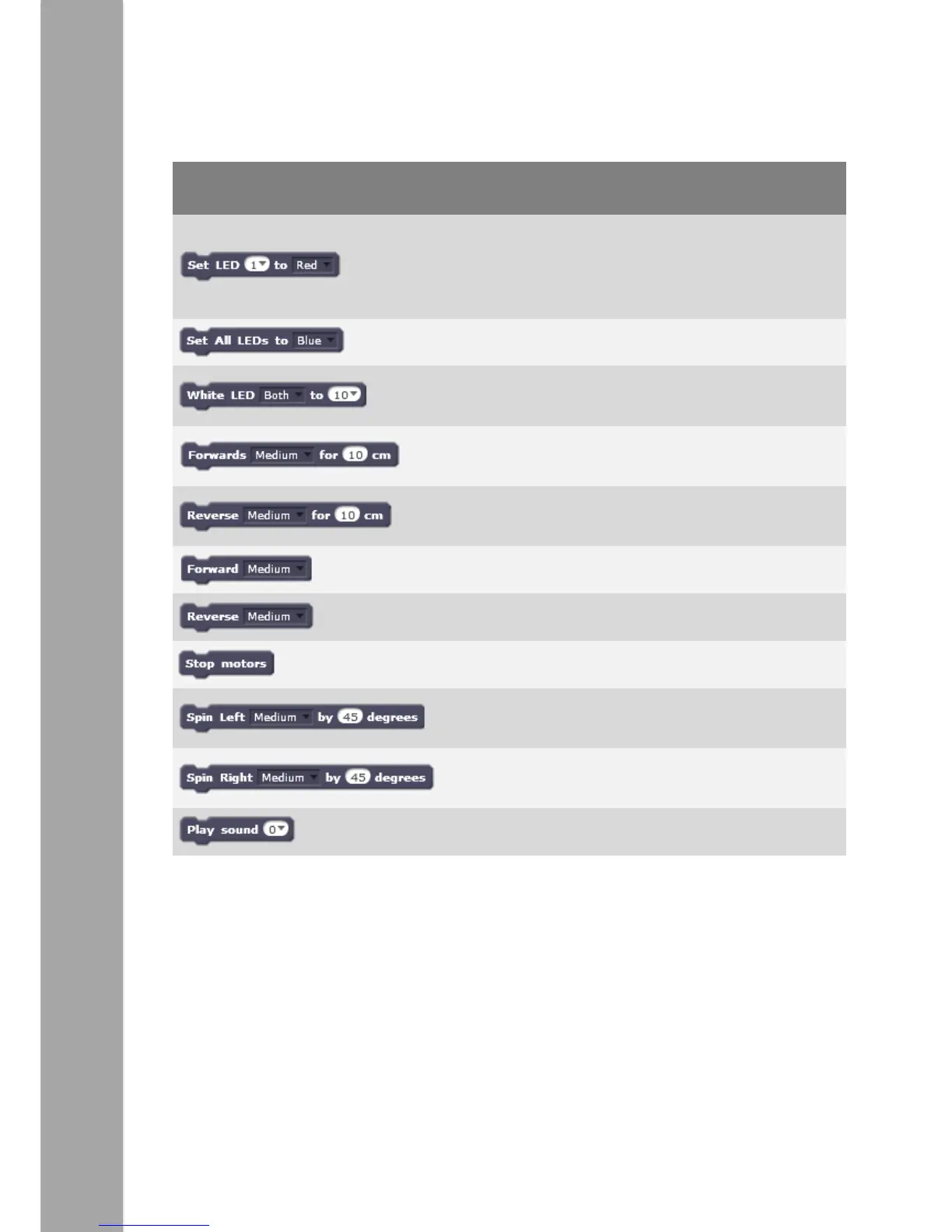 Switches the motors on in reverse.