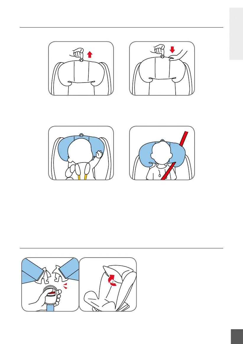 los grupos 0+/I. La guía por la que pasa el cinturón en el reposacabezas debe quedar por