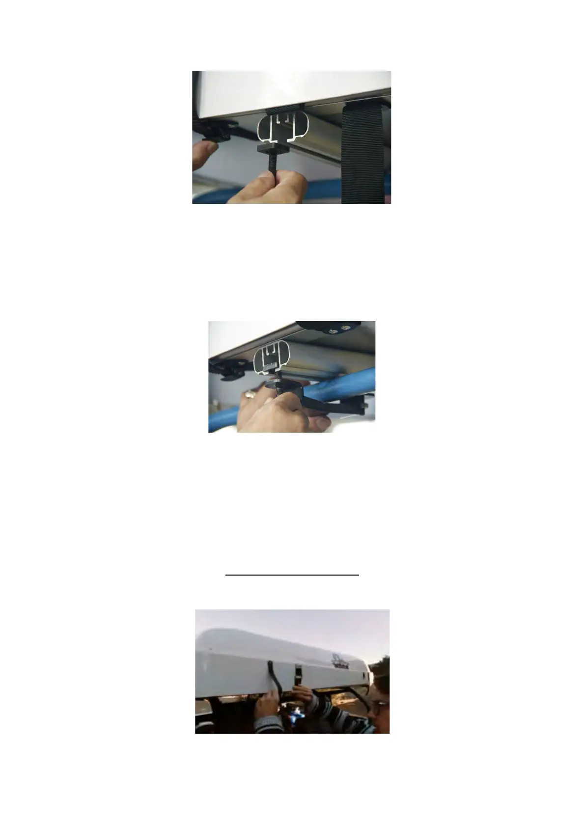 4、 Take the bottom bracket and fit it under your cross bar so that the bolts go through