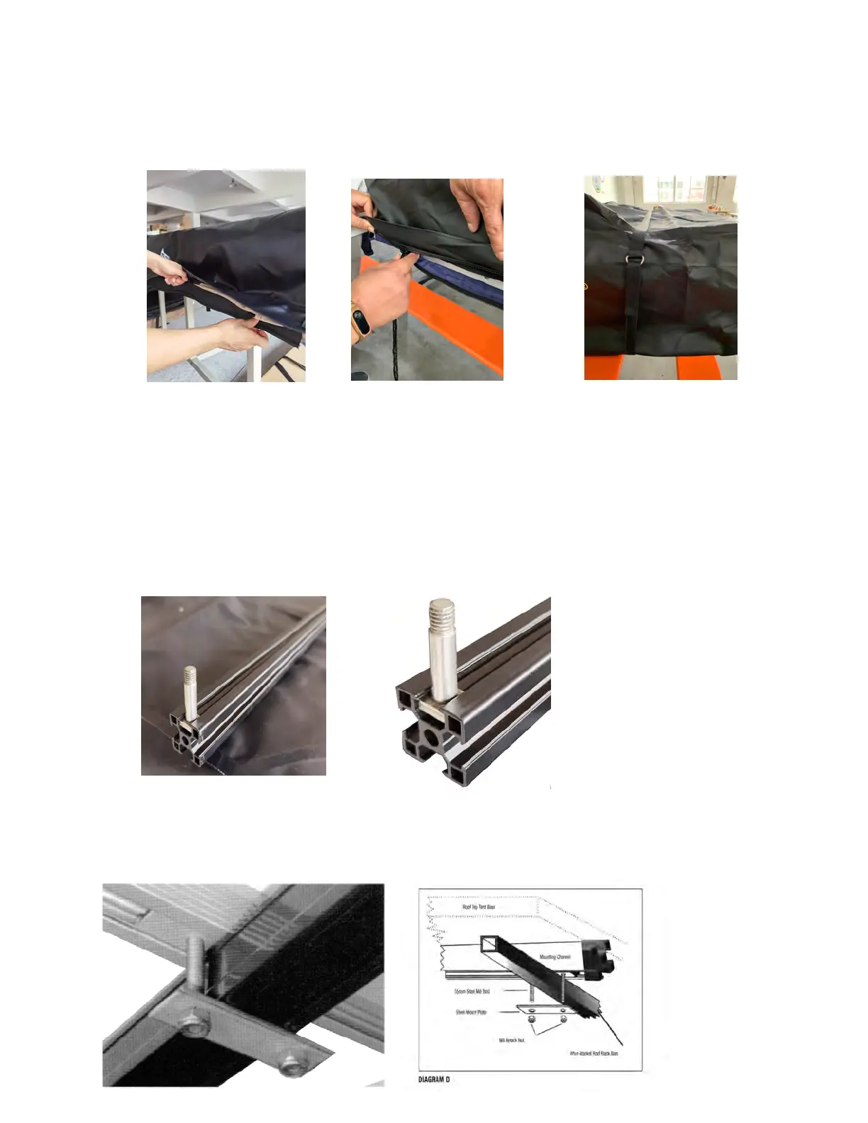 4. Slide the 8mm bolts and channel sliders into the mounting tracks. Lift one side of the tent to