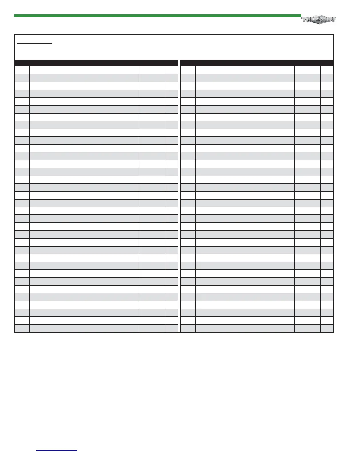 126 PLASTIC INSERT CAP 1 1/4" RD 11 GA BNH0573 10 160 DECAL-EXERCISE CHART AXT-2.5 BNH2160 1