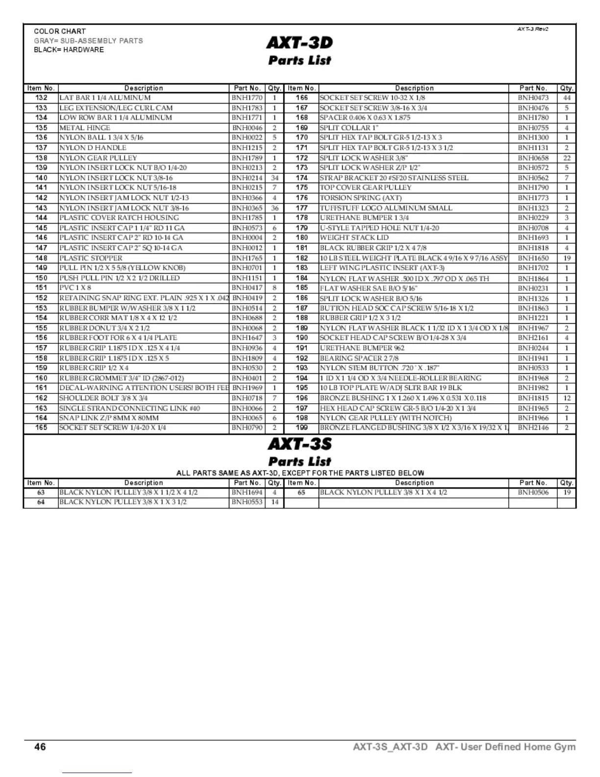 TuffStuff AXT-3D - AXT-3 S Parts List