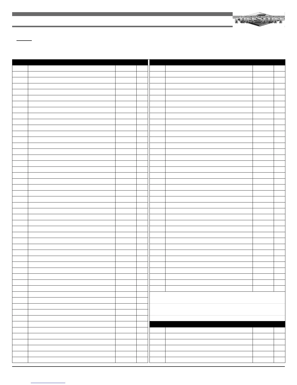 ITEM # DESCRIPTION PART # QTY. ITEM # DESCRIPTION PART # QTY.