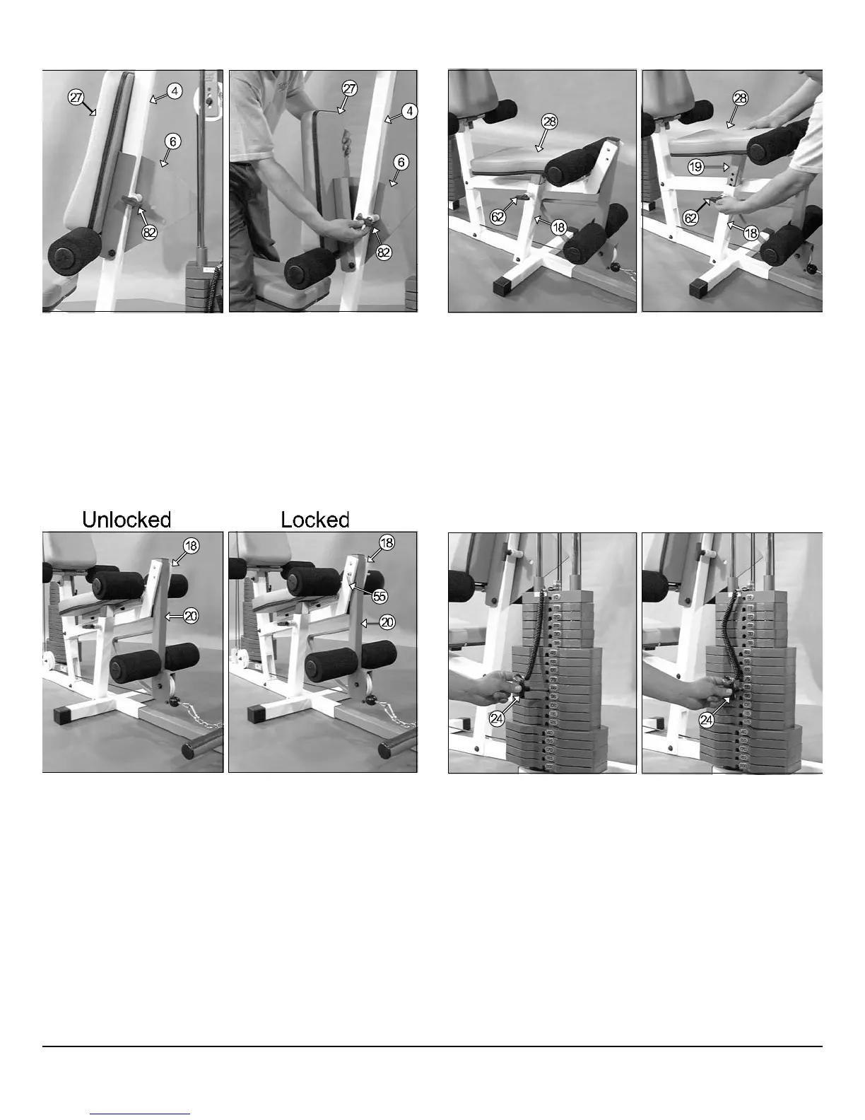 Insert the L-Locking Pin (#55) through the Leg Extension Bench