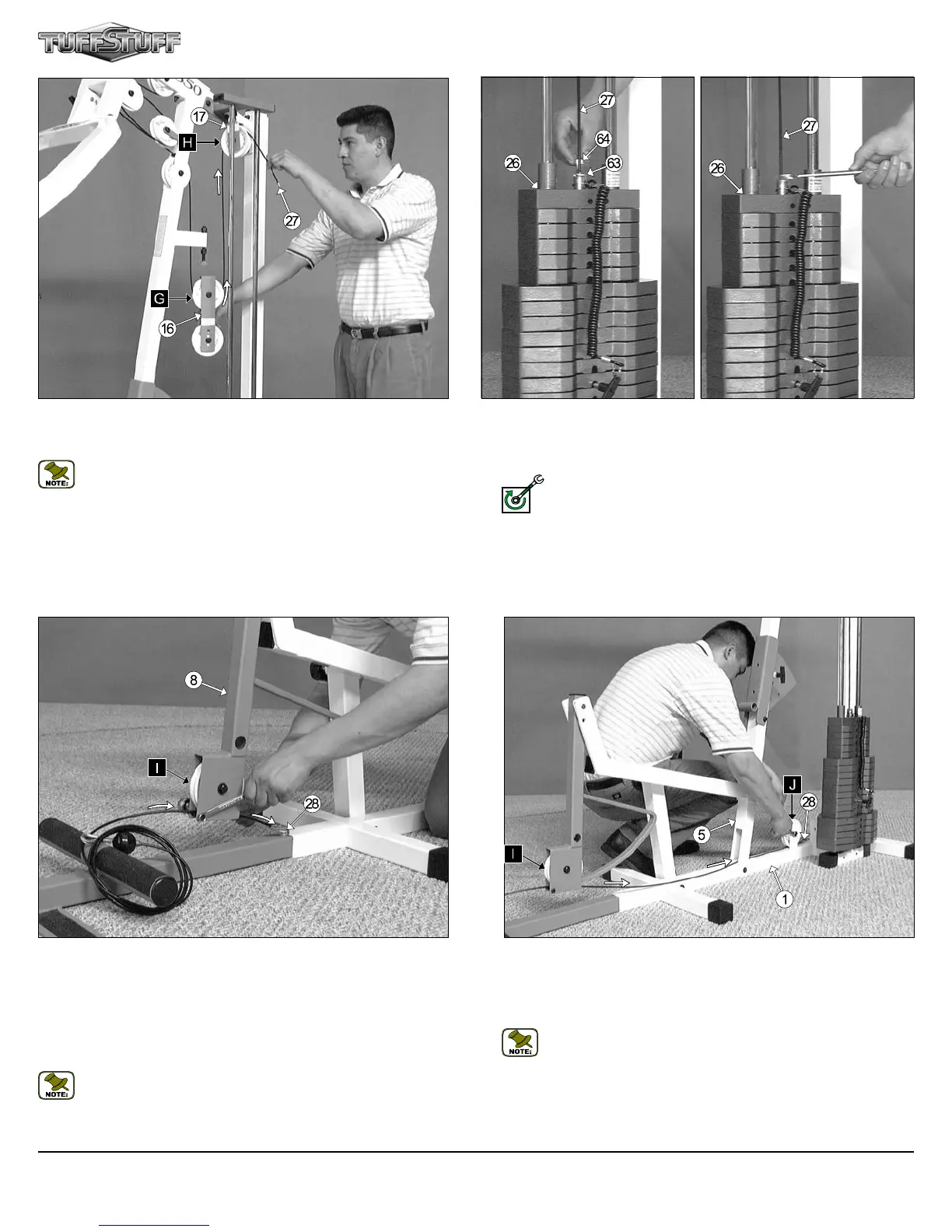 (#68). Next, route the Leg Extension Cable (#28) under the Nylon Pulley