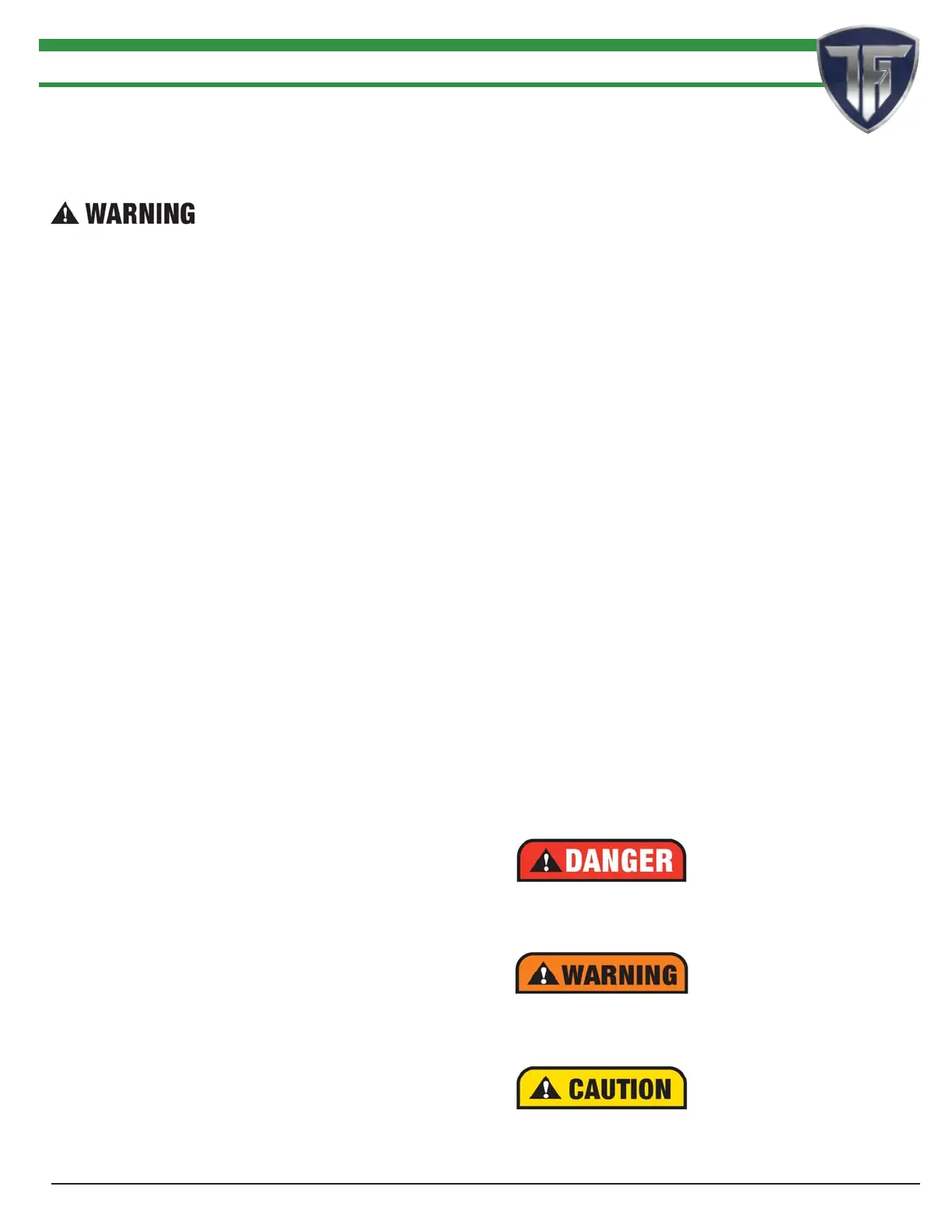 2. Read and understand Owner’s Manual and all Danger, Warning