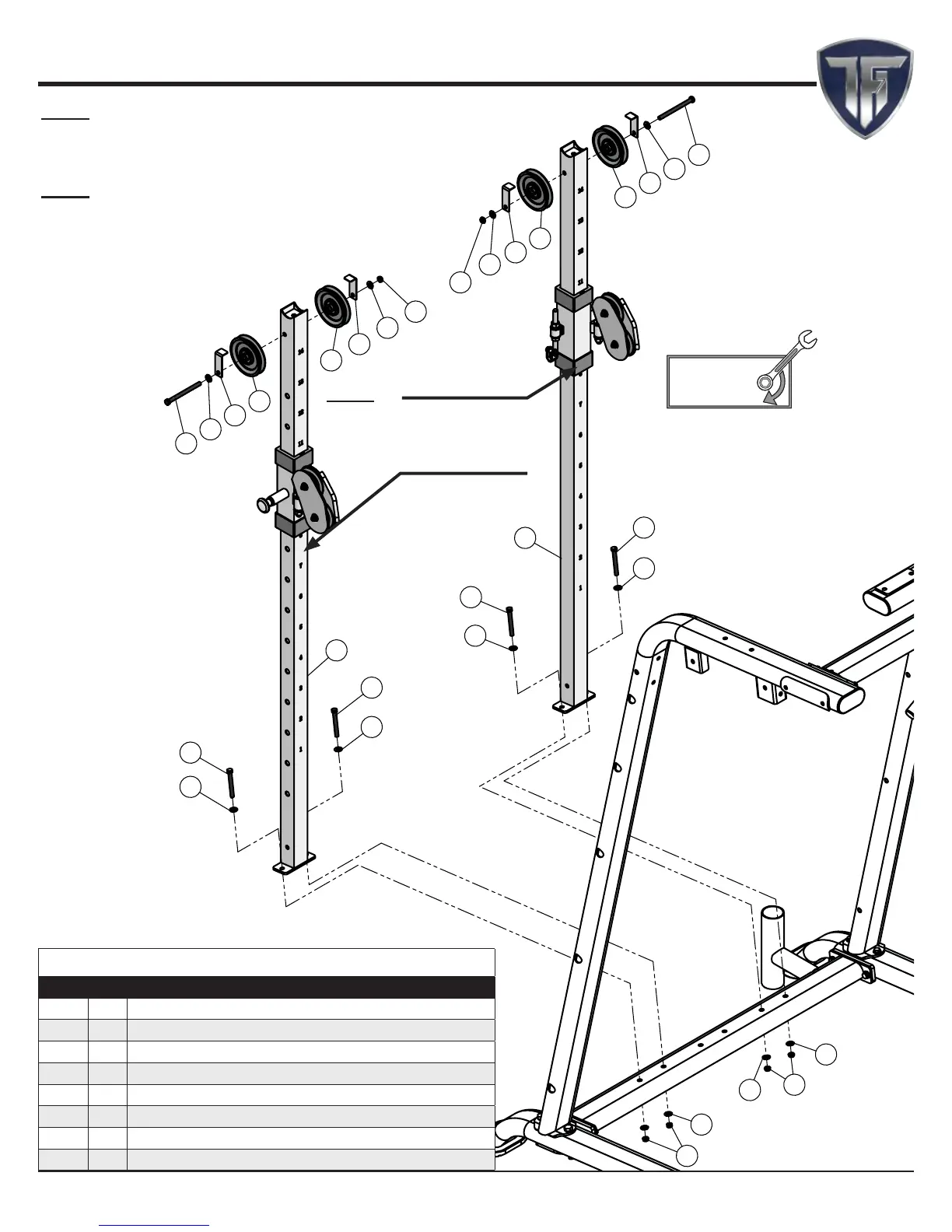 Loosely tighten all hardware in this step.