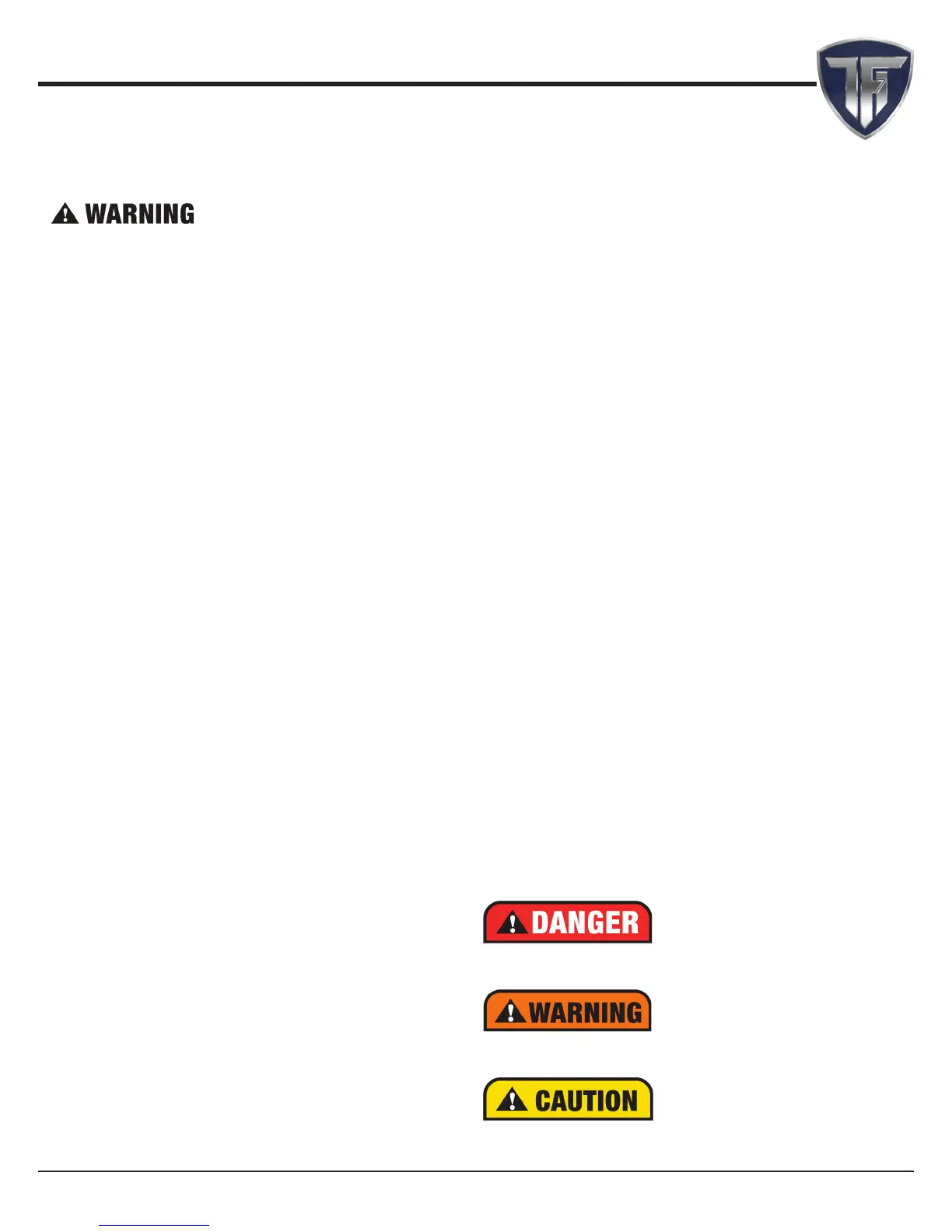 2. Read and understand Owner’s Manual and all Danger, Warning