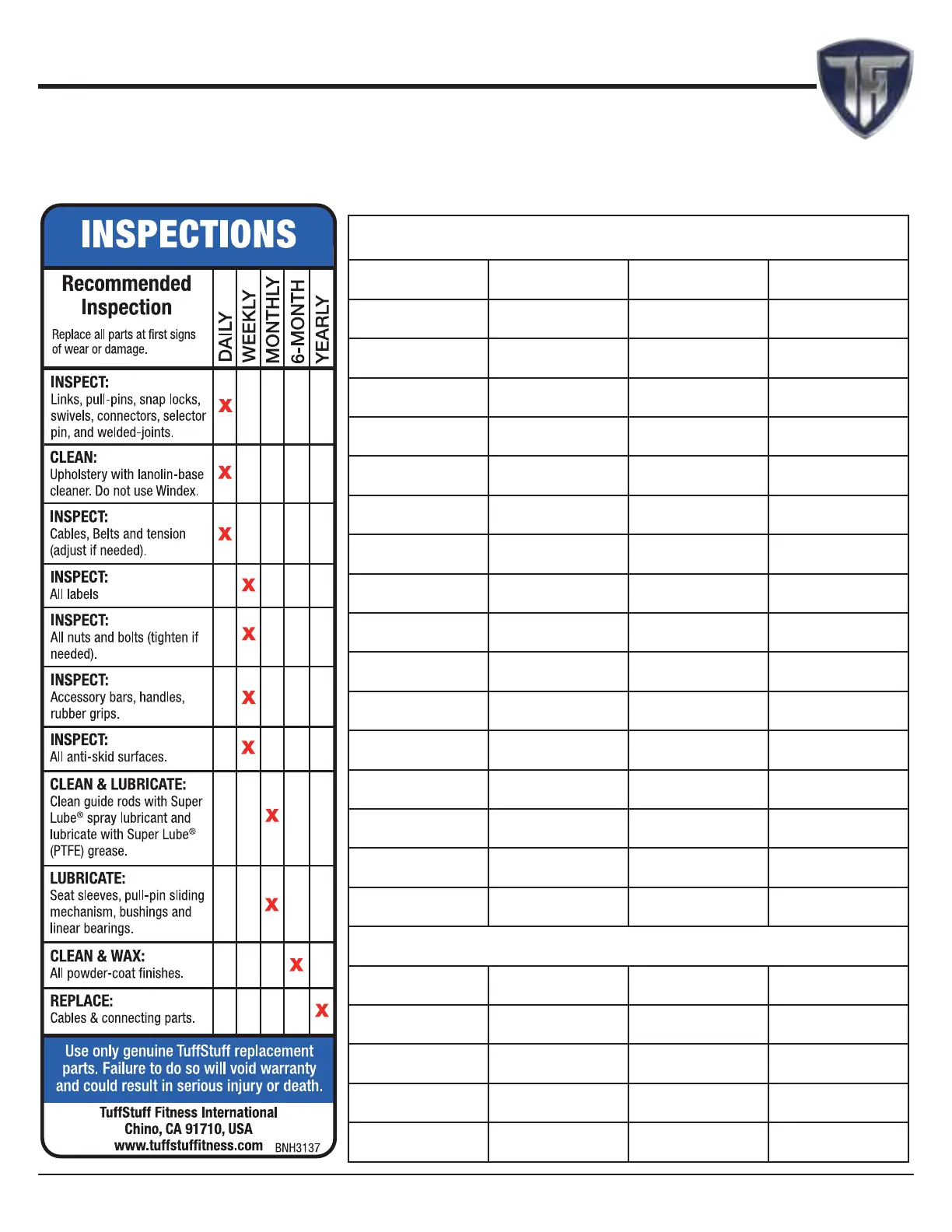 Professional Service Company approved by TFI. Keep a service log of all maintenance and repair activities. Extra copies can be downloaded