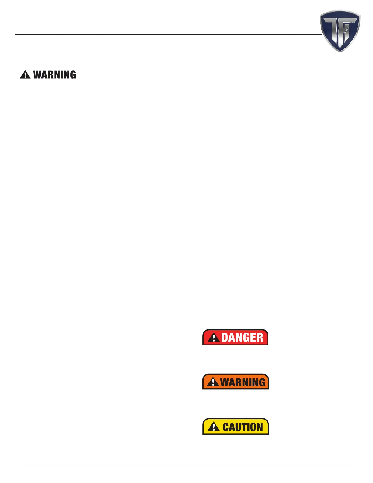 2. Read and understand Owner’s Manual and all Danger, Warning