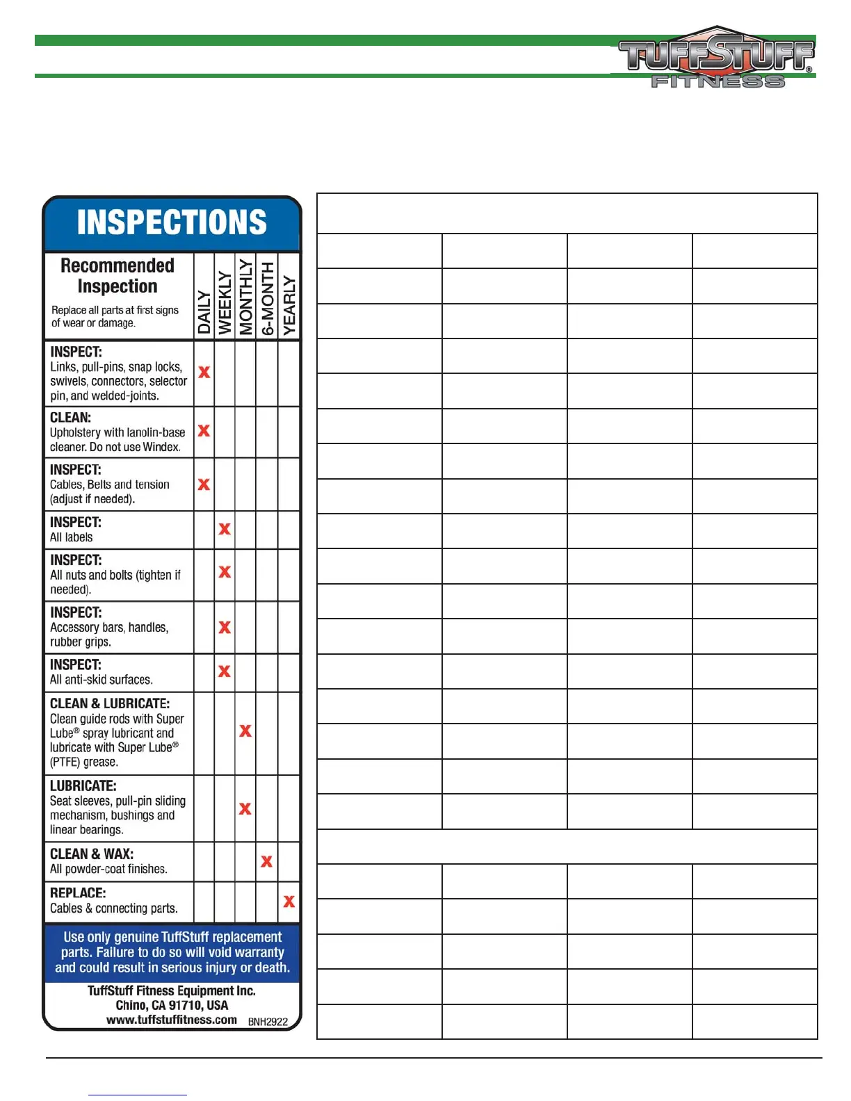 not limited to cables, pulleys and rubber grip. Tu Stu recommends you maintain a service contract with a Tu Stu Authorized Dealer