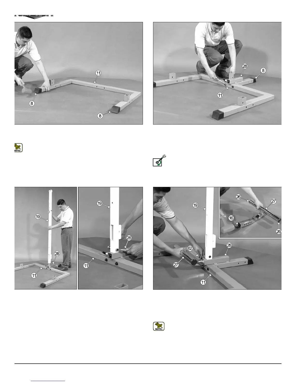 Note: When positioning the Base Frame (#11) consider the com-